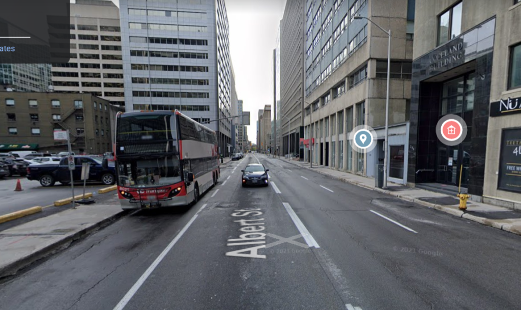 Finally, the City should consider restoring Albert and Slater to two-way streets from their current one-way configuration. Not only would this increase options for car drivers, this would also make it safer for everyone else. Both Albert and Slater—currently wide, inhospitable, car gutters (see image below)—would benefit from this treatment, but the City has been talking about doing this with Metcalfe since at least 1974 and as recently as their 2012 “Discussion of Potential One-Way Street Conversions in Downtown Ottawa” (PDF), along with other downtown one-ways. Let’s get on with it!