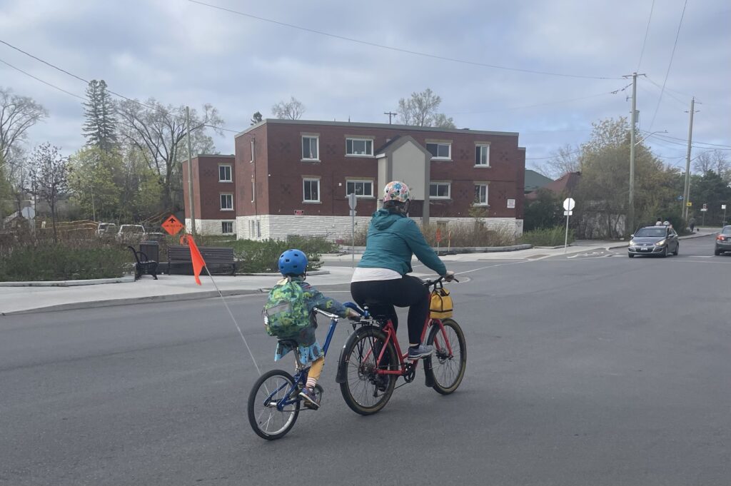 2023 Annual General Meeting 2023 Annual General Meeting Infopack.pdfDownload A woman and child ride bikes on a street with no bike lanes.